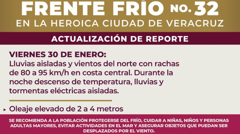 Leer másAusncio Rivera /Vocesver. com/noticias Veracruz, Ver. A 30 de enero 2026.. Veracruz,Ver.a 30 de enero 2026…Con pronóstico de lluvias aisladas