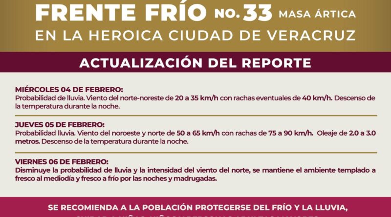 Leer másAusencio Rivera/Vocesver.com/noticias Veracruz, Ver. A 4 de Febrero 2026. Ante la cercanía del Frente Frío 33 que se espera ingrese