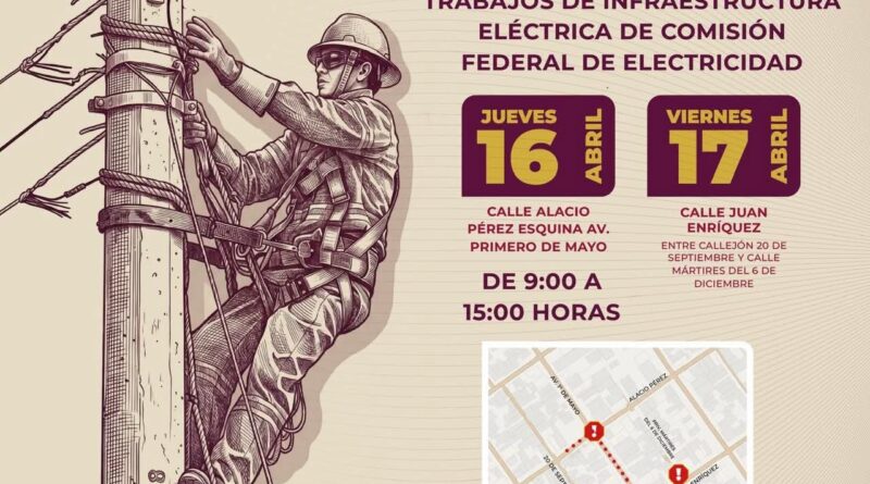 *Trabajos de CFE en la colonia Flores Magón este 16 y 17 de abril*