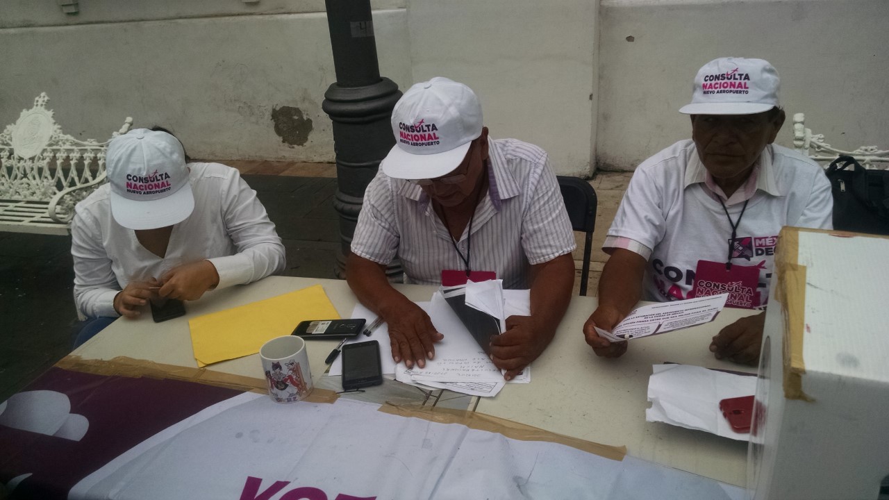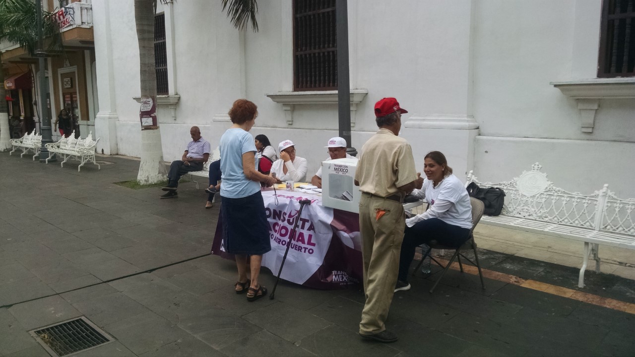 Veracruzal, Ver.. a 27 de Octubre.- Hasta la mañana de este sábado(3 días) por lo meno 940 ciudadanos veracruzano habían acudido a la casilla del Zócalo de Veracruz a emitir su voto sobre la consulta ciudadana sobre la construcción del nuevo Aeropuerto Internacional de la Ciudad de México que concluye este domingo.