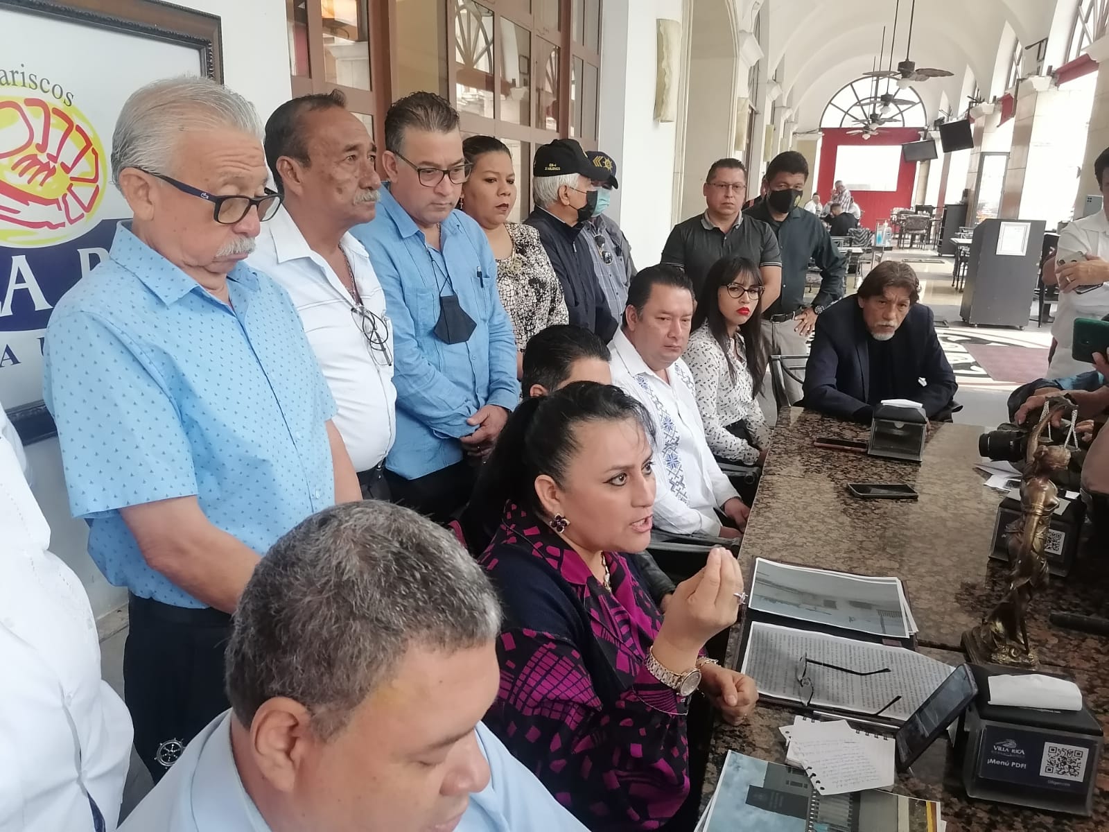 VERACRUZ,VER.- A 21 DE OCTUBRE 2022.- UN NUTRIDO GRUPO DE ABOGADOS DE VERACRUZ ENCABEZADOS POR LA LICENCIADA LORENA RODRIGUEZ DÍAZ PRESIDENTA DE LA ASOCIACIÓN DE LICENCIADOS JURÍDICOS DE VERACRUZ SE MANIFESTARÓN EN CONTRA DEL CAMBIO DE JUZGADOS DE VERARUZ HACIA LA CIUDAD DE CARDEL POR FALTA DE PRESUPUESTO DEL GOBIERNO DEL ESTADO. LOS ABOGADO DIERON RUEDA DE PRENSA PARA DAR A CONOCER SU POSTURA DE INCONFORMIDAD…FOTO AUSENCIO RIVERA.