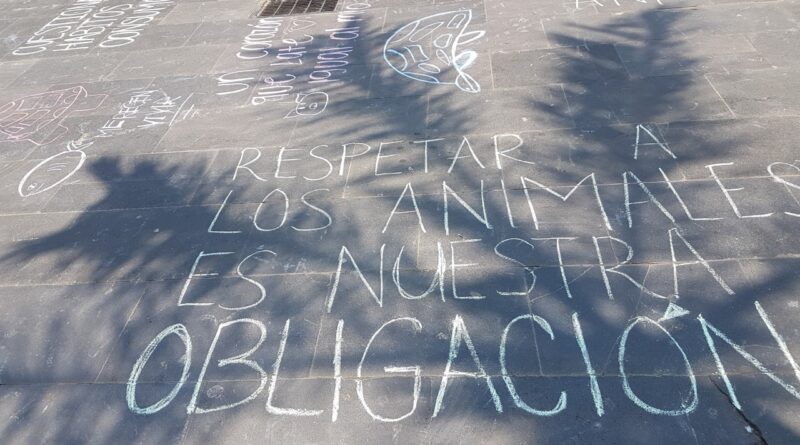 Veracruz,Ver.- a 6 de Mayo 2022,.Un grupo de ambientalistas pertenecientes a la organización “Puebla Animal SAVE”se manifestarón la mañana de este viernes en los bajos del Palacio Municipal con pintas alusivas al respeto animal e incluso escribieron diversos mensajes en el piso a un costado del Ayuntamiento de Veracruz.