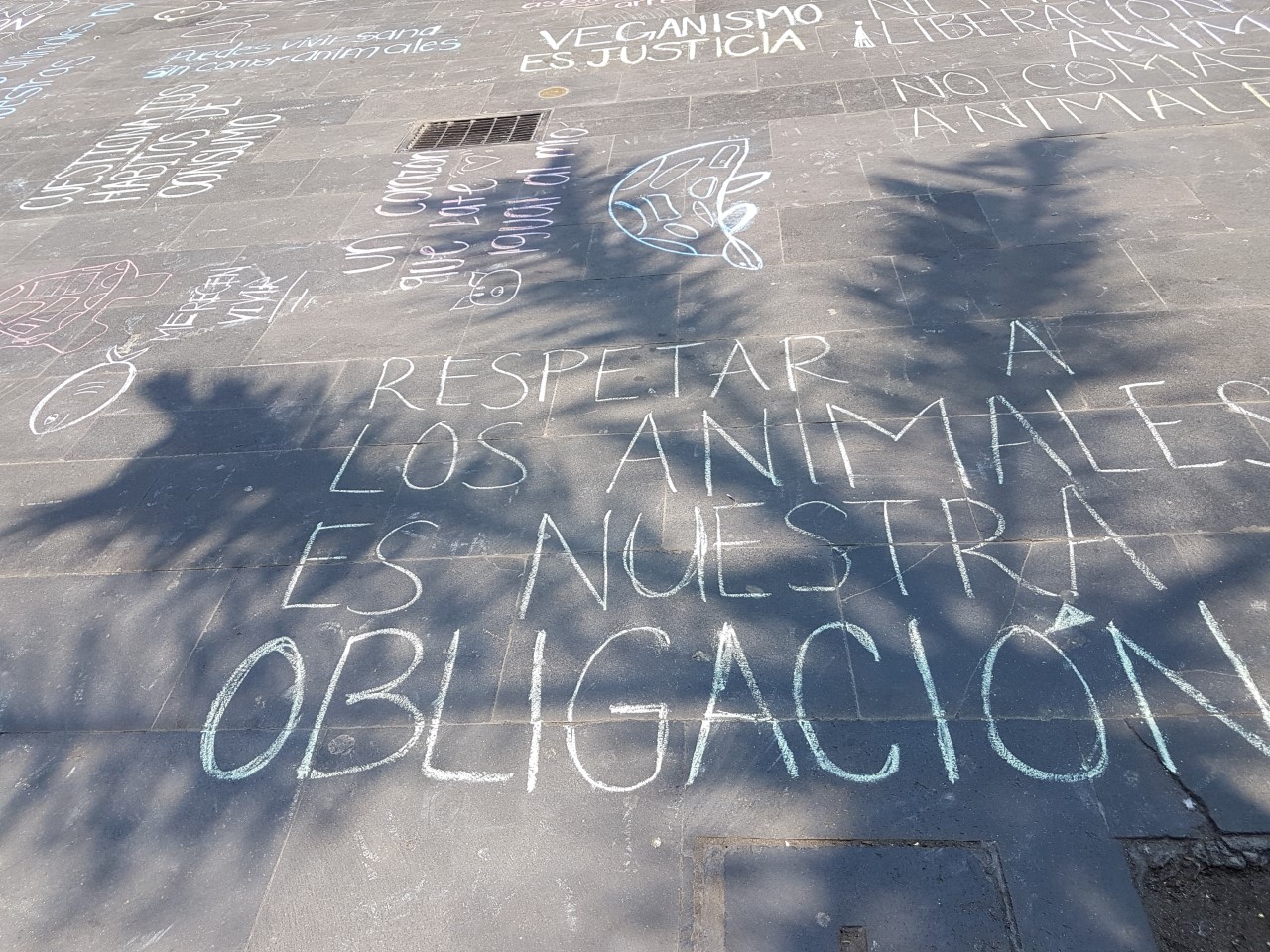 Veracruz,Ver.- a 6 de Mayo 2022,.Un grupo de ambientalistas pertenecientes a la organización “Puebla Animal SAVE”se manifestarón la mañana de este viernes en los bajos del Palacio Municipal con pintas alusivas al respeto animal e incluso escribieron diversos mensajes en el piso a un costado del Ayuntamiento de Veracruz.