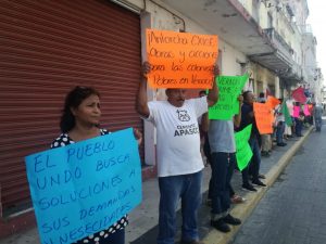 Al respecto Cristina Marin Leal representante de esta organización en el Puerto de Veracruz las demandas que planteamos son obras y servicios elementales para pueblos y colonias populares de más de 105 municipios de la entidad y consisten en: electrificaciones, introducción de agua potable y drenaje sanitario, carreteras, infraestructura educativa, apoyo al campo, regularización de colonias, espacios culturales y deportivos, etc., acciones que han de servir para mejorar la situación de cientos de miles de veracruzanos, no solo antorchistas, que se encuentran en pobreza.