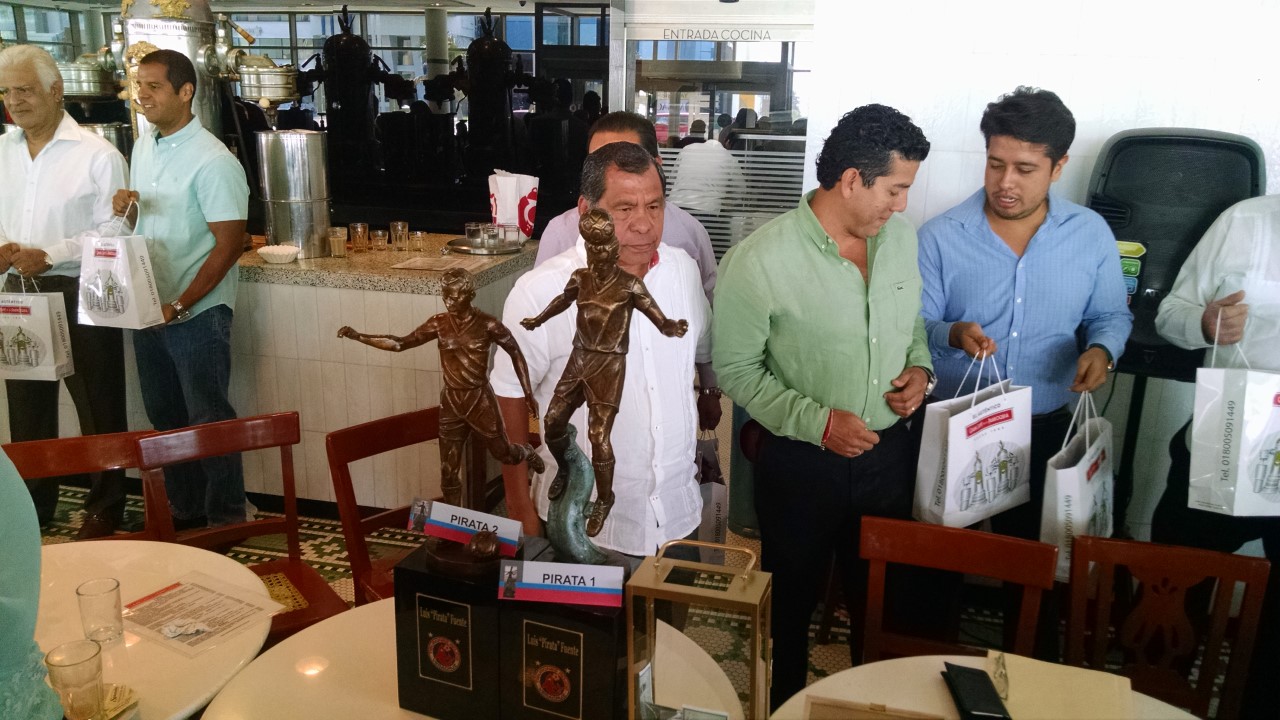 Veracruz,Ver.- a 15 de Abril 2019.- A partir de este día(15)de abril hasta el 15 de Mayo se llevará cabo la votación para saber cual de las dos maquetas es la idónea para construir la estatua del destacado futbolista de talla internacional Luis de la Fuente «El Pirata», para ello se instaló una urna de cristal en el Auténtico Gran Café de la Parroquia de la 200 años de la Familia Fernández para que ahí los mas de tres mil visitantes diarios emitan su voto y, de esta forma poder concretar el gran proyecto que busca rendir de esta forma un merecido homenaje a este deportista veracruzano.