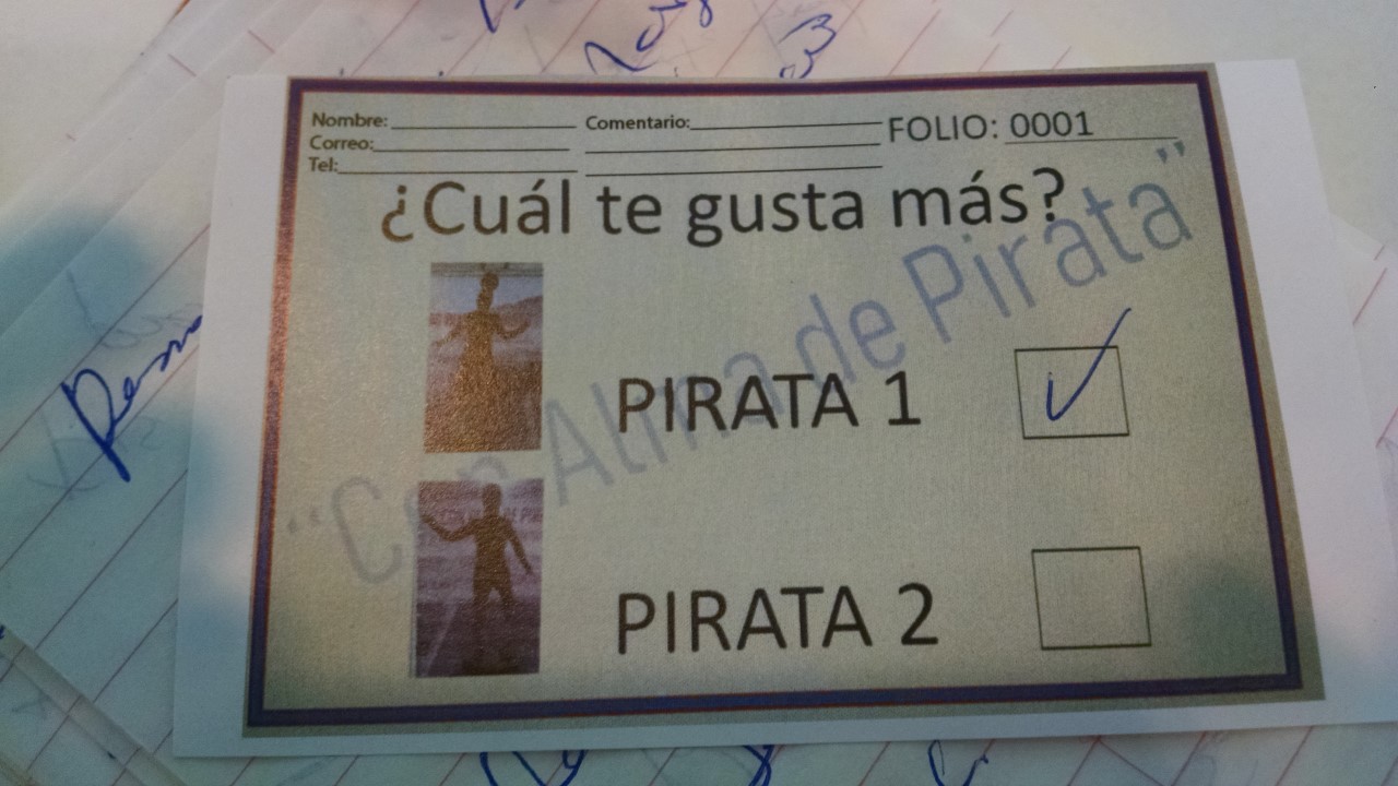 En conferencia de medios el licenciado Gilberto Farías Morales presidente del Comité para la construcción de dicha estatua informó que además de instalar la mencionada urna también se pone a disposición de la ciudadanía en general la página «Con Alma de Pirata» para que también ahí emita su voto y, se determine cual de las dos maquetas presentadas sea la ganadora para que el escultor de talla internacional Bernardo Luis López Artasánchez proceda a construir la estatua que será de bronce, medirá más de 3 metros de altura y, tendrá un peso de una tonelada.