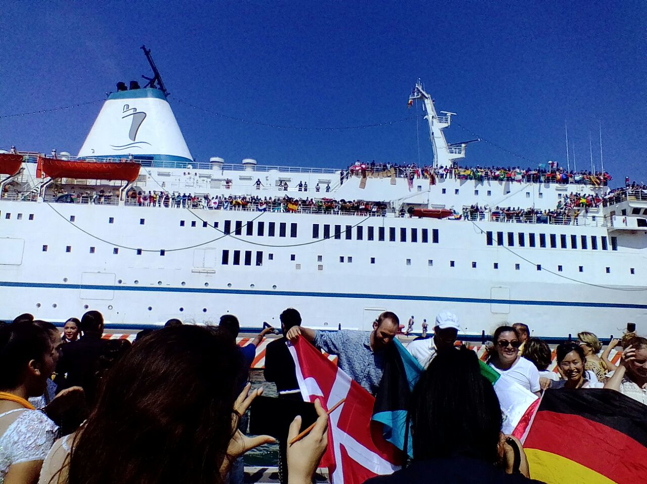De acuerdo con informes proporcionados por las autoridades marítimo portuarias el barco llegó a las 14;38 horas y auxiliado por dos remolcadores de la Capitanía de Puerto atracó en el muelle turístico de la «T» de esta Ciudad, fue recibido por cientos de personas que ya lo esperaban desde temprana hora entre turistas y, ciudadanos veracruzanos.