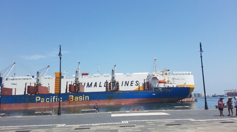 Veracruz,Ver- A 08 de Agosto 2022.- El atraque de barcos de altura en muelles del Malecón de Veracruz, se convierte en un atractivo más para el turismo que nos visita en este periodo vacacional de Verano. La diversas maniobras de remolcadores y capitanes de los barcos son únicas en la zona. Foto Ausencio RIVERA.