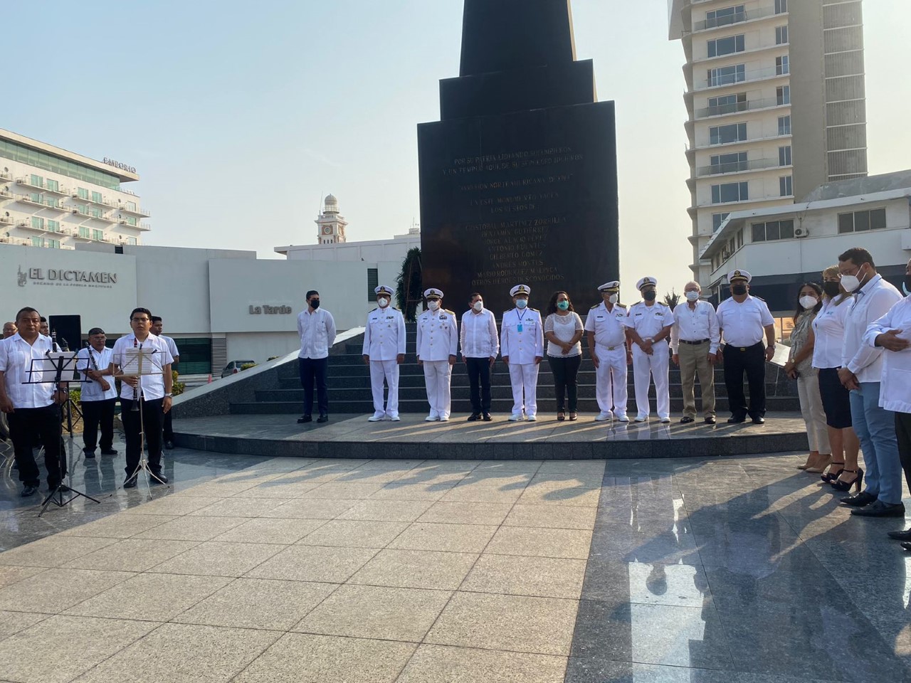 PIE DE FOTO.Veracruz.Ver.- a 21 de Abril 2022.- Autoridades navales, civiles y militares conmemorarón la mañana de este jueves el 108 aniversario de la defensa del Puerto de Veracruz.Además de realizar guardia de honor depositarón ofrendas florales en el monumento a los héroes caídos de la Ciudad de Veracruz(Obelisco).Estuvo presente el Capitán de Altura Enrique Lozano Díaz inspector de ITF Veracruz quien acudió con la representación del Colegio de Marinos Mercantes de esta Ciudad. Foto Ausencio RIVERA.