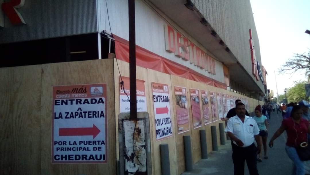 PIE DE FOTO.- Veracruz, Ver.- A 28 de Marzo 2020.- Protegen con tablas de madera los vidrios de centros comerciales en la Ciudad de Veracruz a efecto de evitar saqueos por parte de personas que aprovechando la emergencia del Covid 19 quieran realizar. La medida es bien vista por los ciudadanos ya que eso asegura el abasto de alimentos en estos tiempos de crisis. Foto ALEJANDRO MURRIETA.