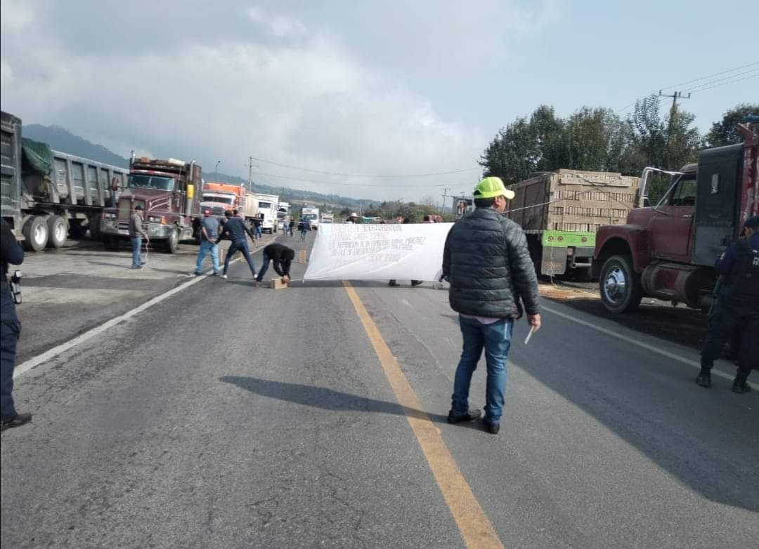BLOQUEAN TRANSPORTISTAS CARRETERA ALTOTONGA-TLAPACOYAN.
