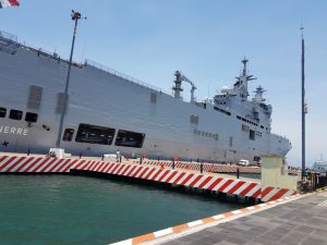 PIE DE FOTO.- A 11 de Mayo 2019.- El buque TONNERRE L914 de la Marina de Francia atracó este martes en el muelle turístico de la» T», debido a su gran volumen llama la atención de visitantes y, de ciudadanos que gustan recorrer diariamente esta zona turística. Foto AUSENCIO RIVERA.