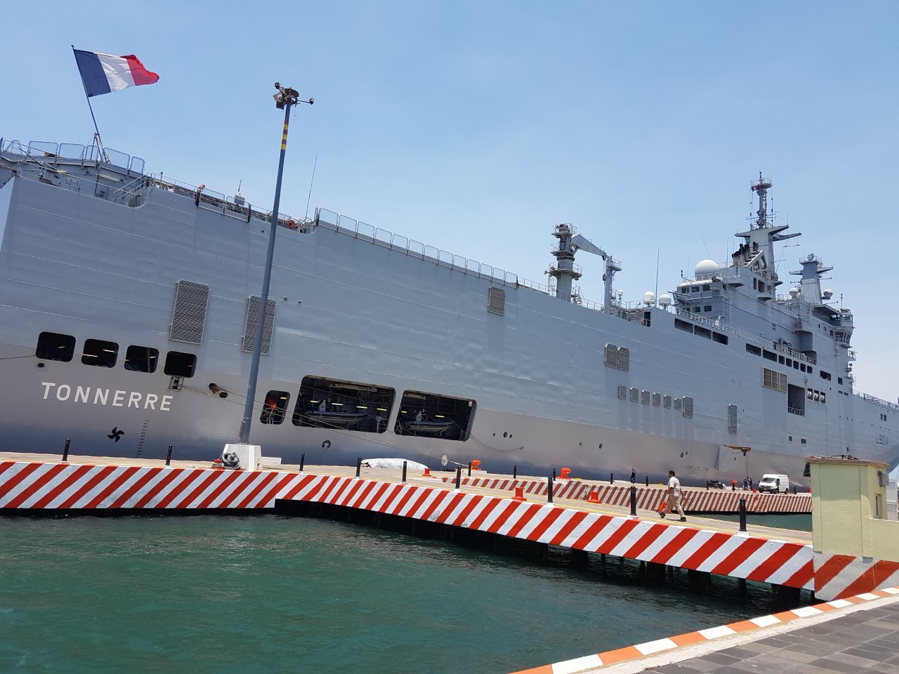 PIE DE FOTO.- A 11 de Mayo 2019.- El buque TONNERRE L914 de la Marina de Francia atracó este martes en el muelle turístico de la» T», debido a su gran volumen llama la atención de visitantes y, de ciudadanos que gustan recorrer diariamente esta zona turística. Foto AUSENCIO RIVERA.