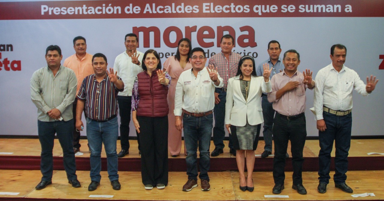 Las 11 alcaldesas y alcaldes electos que se suman a Morena son Javier Valladares Agustín, de Hidalgotitlán; Giovanny Auli Moo, de José Azueta; Urbano Bautista Martínez, de Playa Vicente; Rocío Cruz Domínguez, de Acula; Alma Rosa Clara Rodríguez, de Amatitlán.