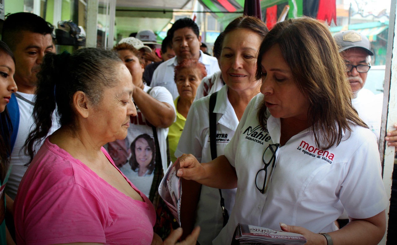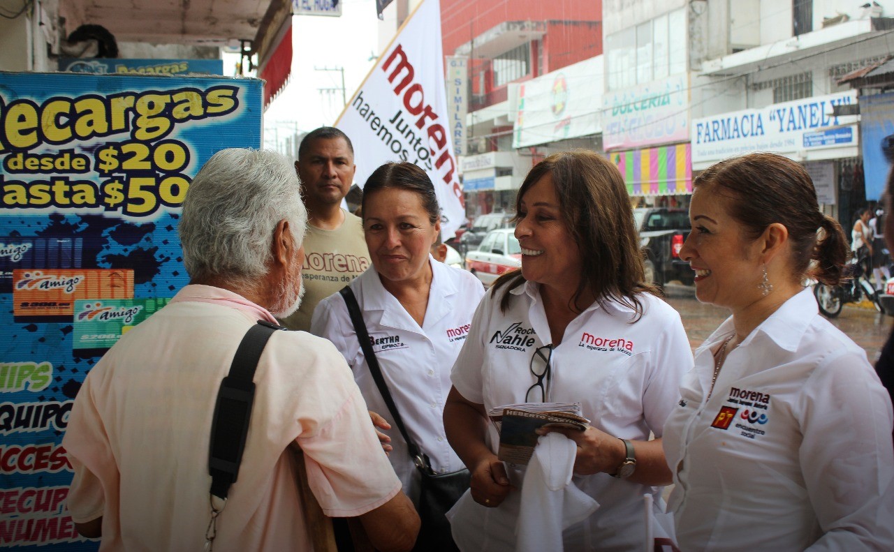 Rocío Nahle estuvo acompañada por la candidata a diputada federal por el distrito III, María Bertha Espinoza, quienes recorrieron el centro de la ciudad y sostuvieron reuniones con diversos sectores.