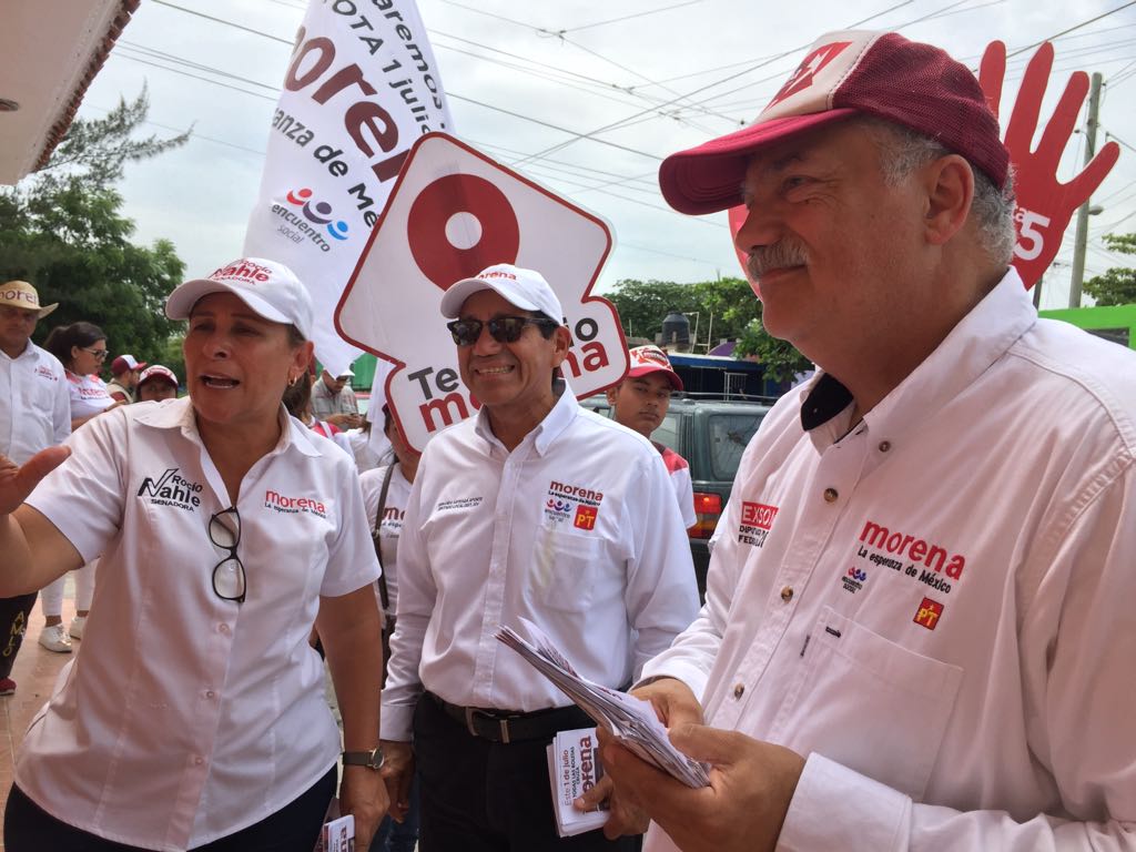 Veracruz, Ver., a 14 de junio de 2018.- Al recorrer las calles del fraccionamiento Río Medio III, los candidatos Fernando Arteaga Aponte, Rocío Nahle García y Ricardo Exsome Zapata, de la coalición “Juntos Haremos Historia”, exhortaron a la gente a razonar su voto al llegar a las urnas este primero de Julio y contribuir al cambio que todo México necesita al votar por MORENA.