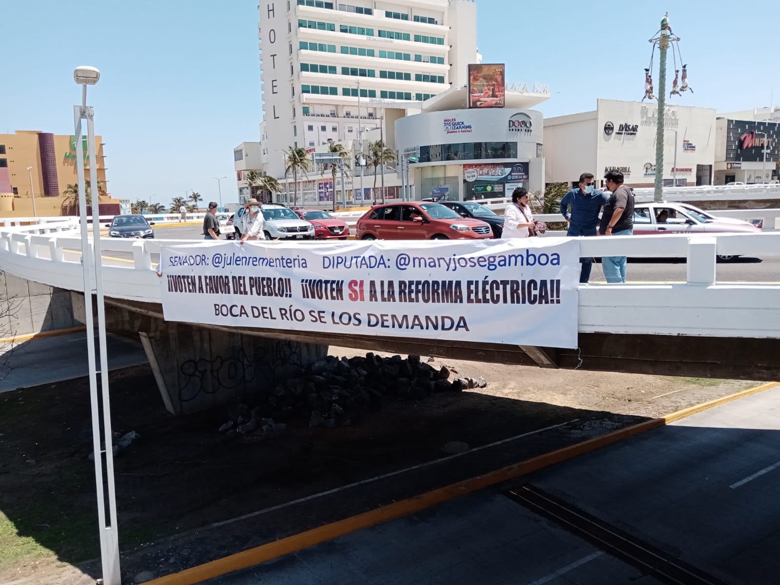 Boca del Río, Ver.-a 29 de Marzo 2022.- Desde este domingo un grupo de ciudadanos boqueños instalarón una lona gigante en la Plaza Las Américas donde exigen al Senador Julen Rementería del Puerto y a la diputada Mary Jose Gamboa que voten a favor de la reforma eléctrica. La lona hasta este martes permanece instalada en el lugar. Foto Ausencio RIVERA.