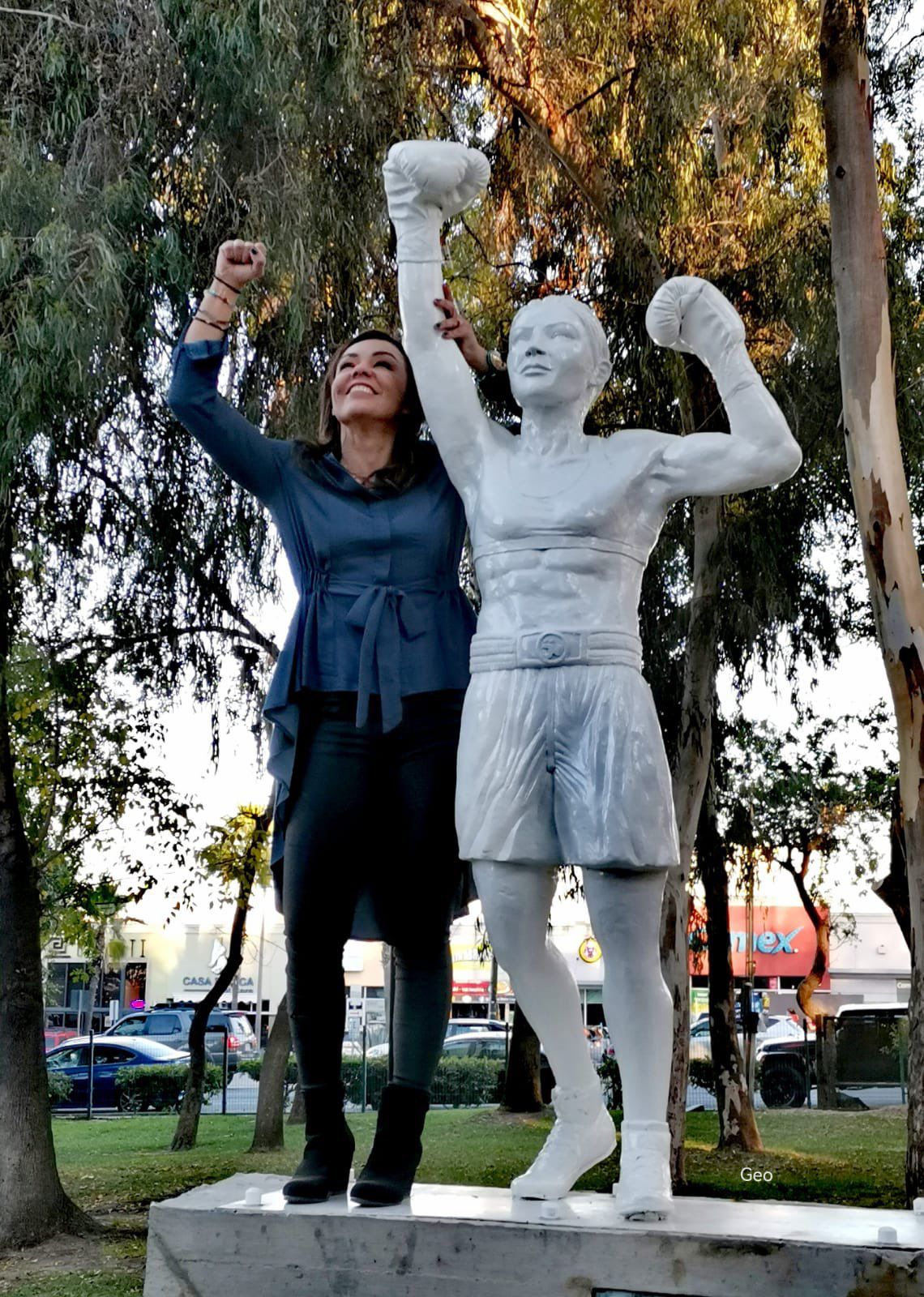 TIJUANA.- A 28 DE NOVIEMBRE 2022.- CON LA DEVELACION DE UNA ESTATUA EN EL SALÓN DE LA FAMA DE TIJUANA, EL COLEGIO NACIONAL DE ABOGADOS PENALISTAS A.C. QUE PRESIDE EL DR. GILBERTO FARÍAS MORALES INMORTALIZAN A JACKIE NAVA EN SU TIERRA. LA ESCULTURA SE DEVELÓ ESTE SÁBADO EN PRESENCIA DE LA MISMA PUGILISTA MEXICANA. FOTO AUSENCIO RIERA.