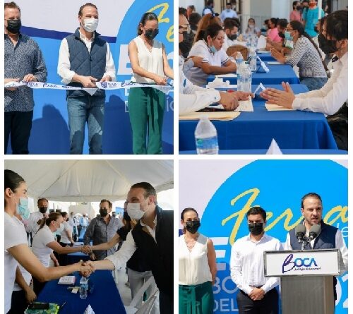 Boca del Río, Ver., 14 de marzo de 2022.-* Este lunes, en la explanada de Palacio Municipal, el alcalde Juan Manuel Unánue Abascal inauguró la Feria del Empleo 2022, en la cual se ofertaron más de 500 plazas para conformar el 60% de la plantilla laboral del nuevo Hospital Covadonga en Boca del Río.