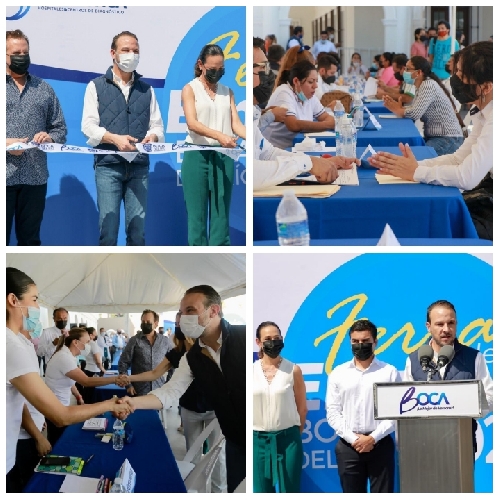 Boca del Río, Ver., 14 de marzo de 2022.-* Este lunes, en la explanada de Palacio Municipal, el alcalde Juan Manuel Unánue Abascal inauguró la Feria del Empleo 2022, en la cual se ofertaron más de 500 plazas para conformar el 60% de la plantilla laboral del nuevo Hospital Covadonga en Boca del Río.