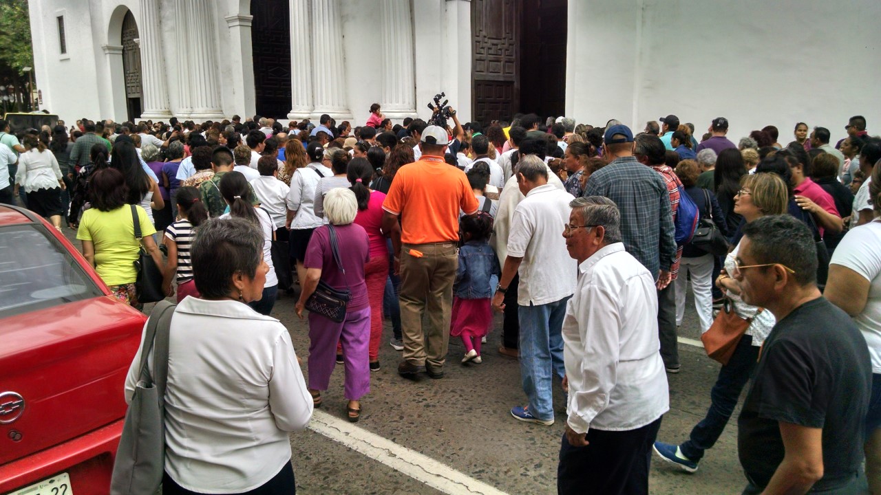 Veracruz,Ver.-30 de Marzo 2018.- Decenas de fieles católicos participaron este viernes por la mañana en el Viacrucis que recorrió diversas calles de la Ciudad hasta llegar a la Iglesia La Catedral de la Asunción, donde el Obispo de la Diócesis de Veracruz Luis Felipe Gallardo Martín del Campo ofició una misa en torno a esta celebración, por la tarde se realizó la Procesión del Silencio.