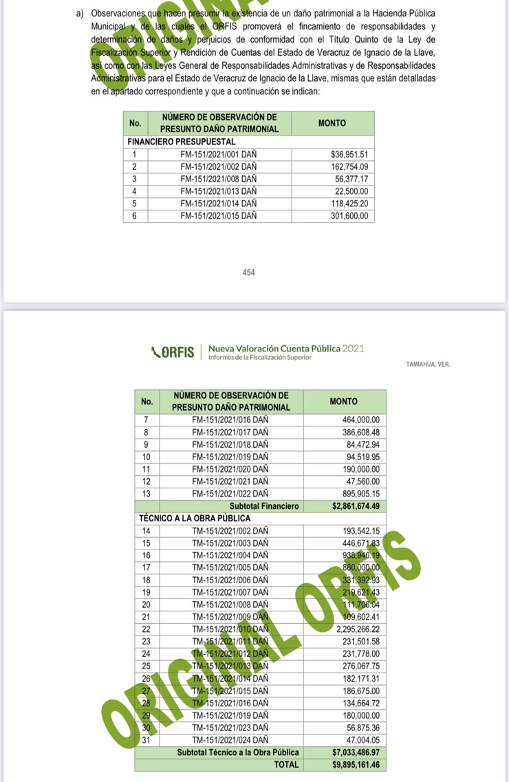 El análisis actualizado da cuenta de un pendiente sin comprobar de 9 millones 895 mil 161 pesos, tan sólo con una reducción de 954 770 mil pesos en comparativa con el análisis previo que señalaba un daño de 10 millones 849 mil 931 pesos.