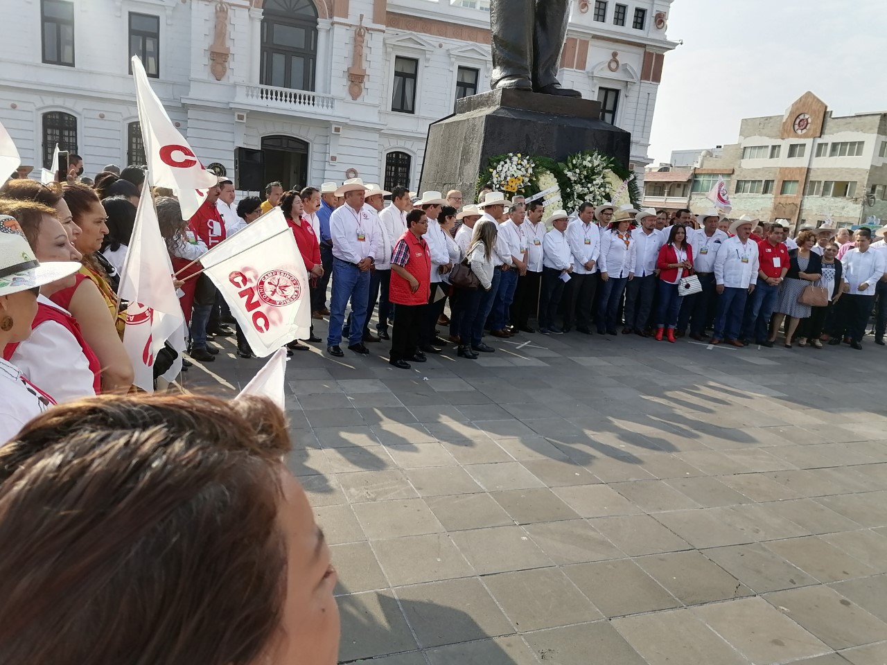 Veracruz,Ver,. a 6 de Enero 2023.-Con la colocación de dos ofrendas florales y una guardia de hornor frente al monumento de Don Venustiano Carranza de la Ciudad de Veracruz,la CNC,la Ugocp y la presencia de diversos representantes campesinos de distintas parte del país se llevo a cabo la conmemoración del 108 aniversario de la Promulgación de la Ley Agraria de 1915.