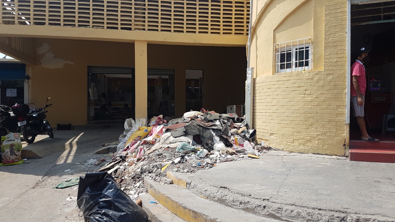 CONTRATISTA DE OBRA DE REHABILITACIÓN DEL MUV DEJA LA BASURA AMONTONADA:LOCATARIOS INCONFOMES.