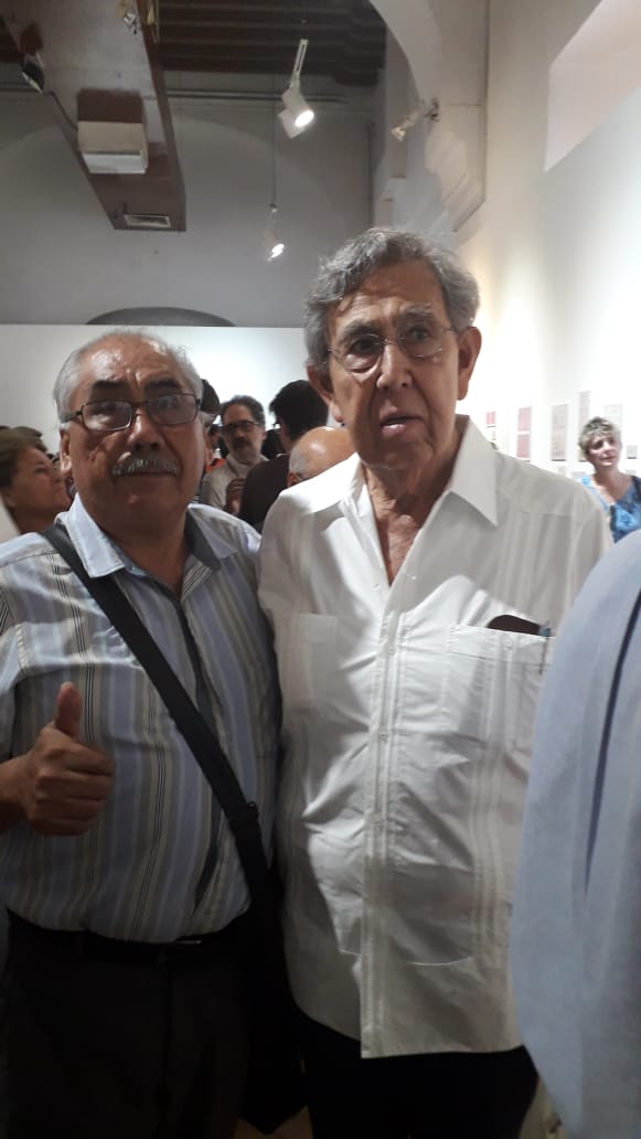 PIE DE FOTO.- A 14 de Junio 2019.- Esta mañana el ex candidato presidencial ingeniero Cuauhtémoc Cárdenas Solorzano visitó las instalaciones del Instituto Veracruzano de la Cultura(IVEC) de la Ciudad de Veracruz donde se lleva a cabo la exposición fotográfica «Barcos de La Libertad» ahí se pueden ver a los primeros Españoles que llegaron a este puerto; precisamente en ese punto fue abordado por el activista de Morena del Norte de la Ciudad  de Veracruz José Reyes Cruz y, con quien se tomó esta gráfica. Foto Contador REYES…..