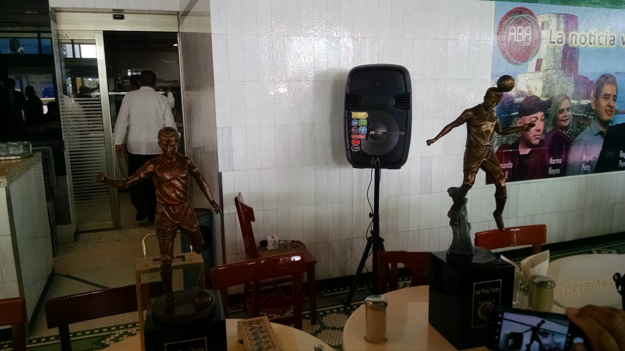 Boca del Río, Ver. a 15 de Abril 2019.- A unas horas de haber iniciado la consulta o ejercicio para saber cual de las dos maquetas presentadas a los medios de comunicación de la zona conurbada Veracruz-Boca del Río la semana pasada para construir la estatua del destacado futbolista veracruzano Luis de la Fuente «El Pirata» es la adecuada,la que va ganando es donde aparece el futbolista haciendo un remate de cabeza(Pirata 1).