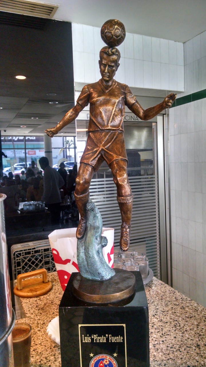 EL 65 % DE LA AFICIÓN VERACRUZANA A FAVOR DE LA MAQUETA DONDE APARECE EL FUTBOISTA LUIS DE LA FUENTE «EL PIRATA» DANDO UN REMATE DE CABEZA:ANTONIO DE LA FUENTE.