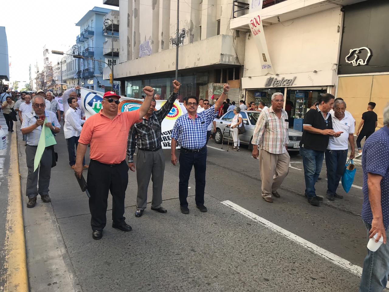 PIE DE FOTO.Veracruz, Ver.- a 15 de Junio 2019.- El capitán Enrique Lozano Díaz inspector de la Federación Internacional de los Trabajadores del Transporte por su siglas en inglés(ITF) del Puerto de Veracruz y, miembro de la OCPNRM también se sumó a la marcha de apoyo al presidente de la República licenciado Andrés Manuel López Obrador que se realizó la tarde de este viernes por calles del Centro Histórico de Veracruz y, en donde participarón diversas organizaciones obreras, sindicales y, civiles. Foto AUSENCIO RIVERA……
