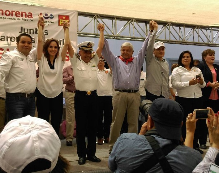 EL CAPITAN MENDOZA SAUCEDA ASISTE A MITIN DE AMLO EN GUAYMAS.