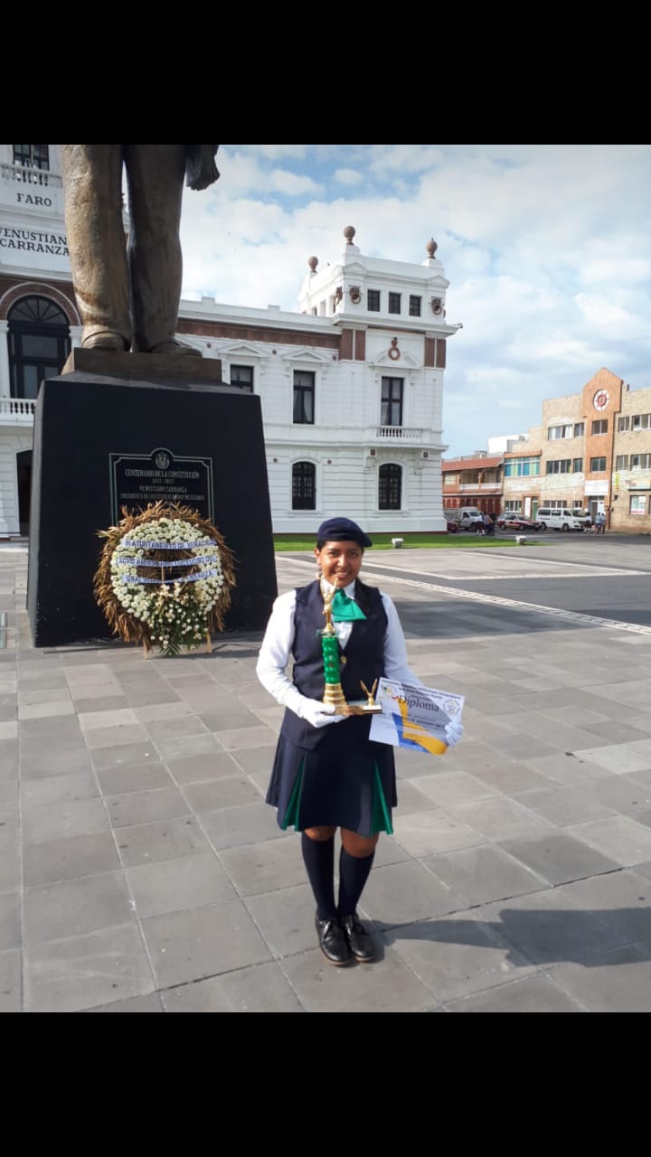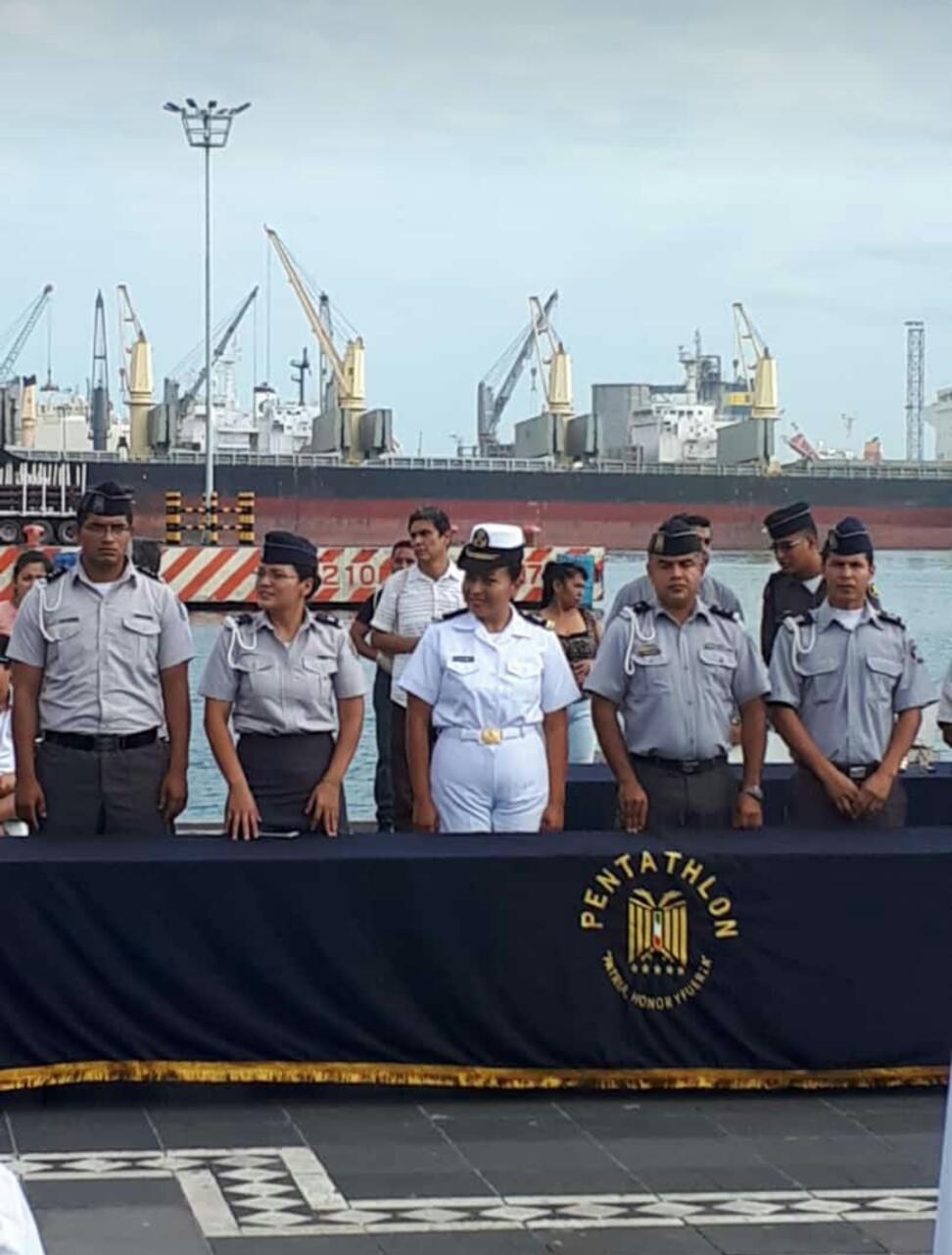 PIE DE FOTO,-25 de Mayo 2018.- En el concurso de escoltas organizado en la ciudad de Veracruz por el Pentatlón el CBTA 276 de Santa Fe Veracruz, obtuvo el primer lugar, por lo que estudiantes de esta institución reciben el trofeo que los acredita como ganadores de este concurso.