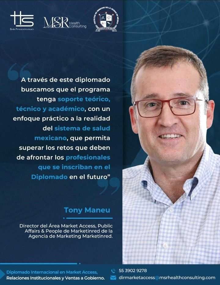 “A través de este diplomado buscamos que el programa tenga soporte teórico, técnico y académico, con un enfoque práctico a la realidad del sistema de salud mexicano, que permita superar los retos que deben de afrontar los profesionales que se inscriban en el Diplomado en el futuro”, señaló Toni Maneu, Director del Área Market Access, Public Affairs & People de Marketinred de la Agencia de Marketing Marketinred.