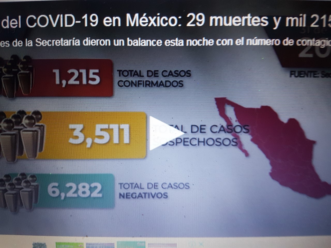 EL SALDO DE COVID-19 EN MÉXICO:29 MUERTES Y MIL 215 CONTAGIOS.