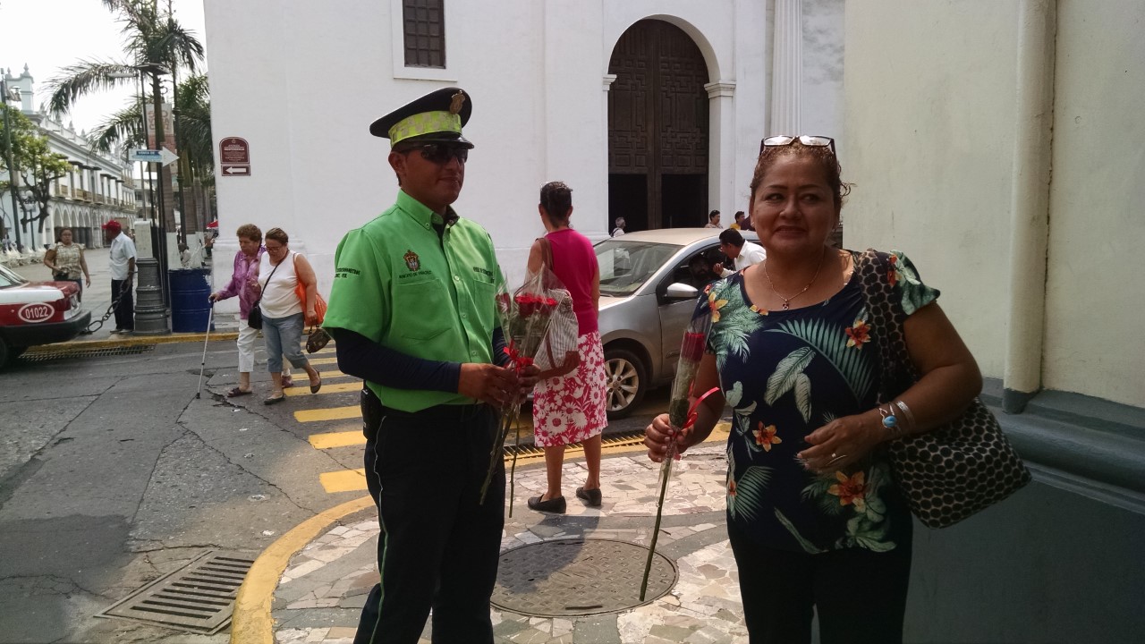 Veracruz, Ver.- a 10 de mayo 2019,.– Empleados de la empresa Zeus Monitoreo Vial del Puerto de Veracruz regalan rosas a madres este día 10 de Mayo» Día de las Madres».