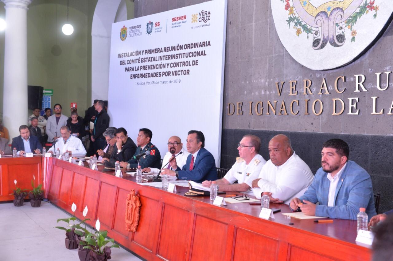 *Xalapa, Ver., 05 de marzo de 2019.-* El gobernador Cuitláhuac García Jiménez destacó la importancia de la coordinación y la prevención en la lucha contra el dengue, zika y chikungunya; una tarea en la que se debe involucrar, por igual, a los sectores público, privado y social por la salud de los veracruzanos.