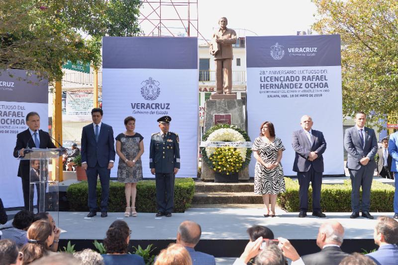 «Así se condujo Rafael Hernández Ochoa; manejó el dinero de los veracruzanos con total y absoluta honestidad, y tuvo siempre como distintivo el conducirse con respeto a las instituciones», concluyó.