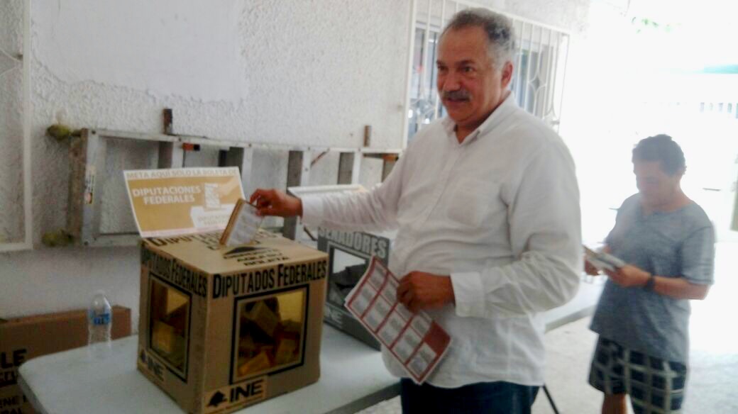 Veracruz, Ver,. 1 de Julio 2018,.Ricardo Exsome, candidato a Diputado Federal por el Distrito 4 de la coalición “Juntos Haremos Historia” conformada por los partidos MORENA, PT y PES, emitió su voto esta mañana en la casilla 4428 del Fraccionamiento Reforma de la ciudad de Veracruz.