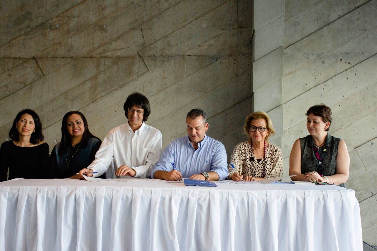 Boca del Río, Veracruz., 10 de julio de 2018.- El presidente municipal de Boca del Río, Humberto Alonso Morelli acompañado del maestro Eduardo García Barrios, coordinador del Sistema Nacional de Fomento Musical, la maestra Cecilia Velázquez Moreno, gerente del programa Orquestando Armonía, la señora Amparo Thomas Obregón, presidenta del Patronato de la Orquesta Filarmónica de Boca del Río, la maestra Mari Carmen García Ortiz directora del Foro Boca y la Síndica Única Iliana Lizet León Huesca llevaron a cabo la firma del acuerdo de colaboración entre el Sistema Nacional de Fomento Musical y el Ayuntamiento de la ciudad que consiste en establecer las bases para garantizar la continuidad, permanencia y fortalecimiento del programa Orquestando Armonía; así como la Secretaría a través del Sistema Nacional de Fomento Musical, el honorable Ayuntamiento a través del programa Orquestando Armonía convienen sumar esfuerzos para garantizar los procesos académicos, artísticos y comunitarios de todas las agrupaciones que integran dicho programa.