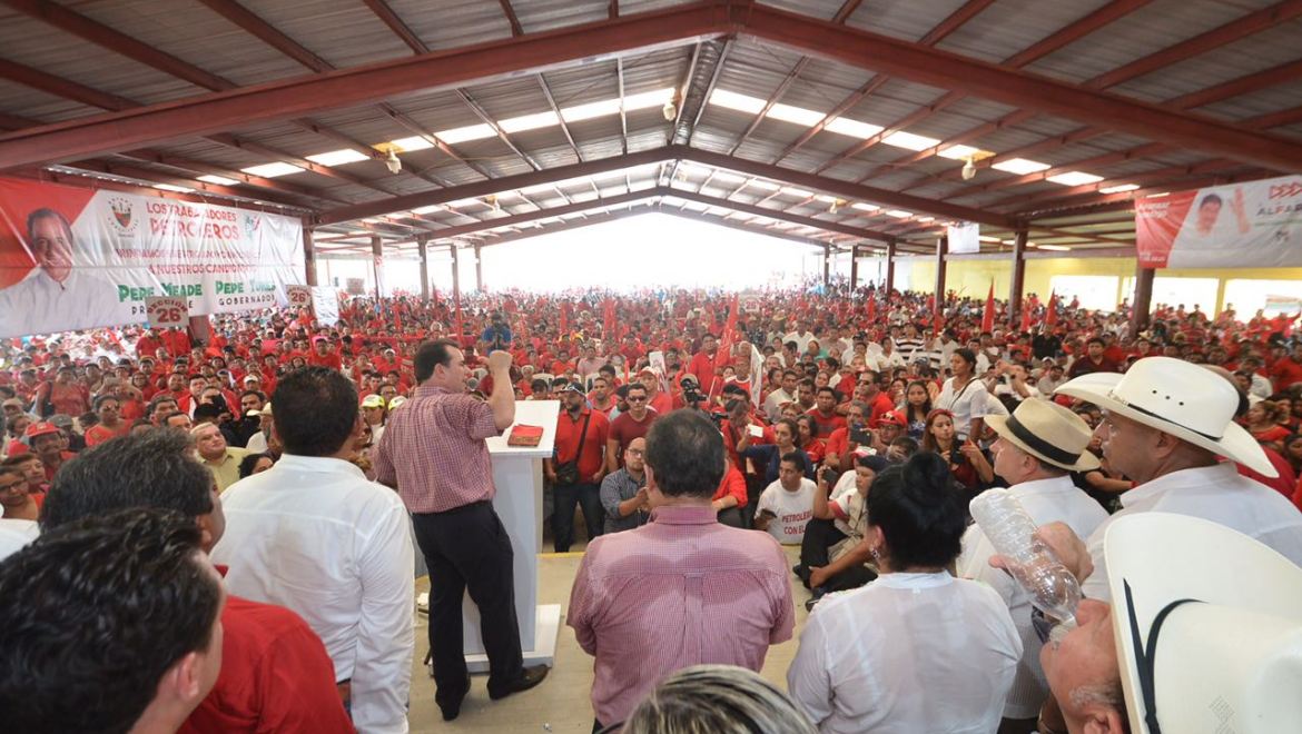 Durante un multitudinario encuentro con la ciudadanía del sur del estado, Pepe Yunes destacó que por muchos años ha tenido el privilegio de acompañar las causas de los maestros, los petroleros y los productores rurales de la región.