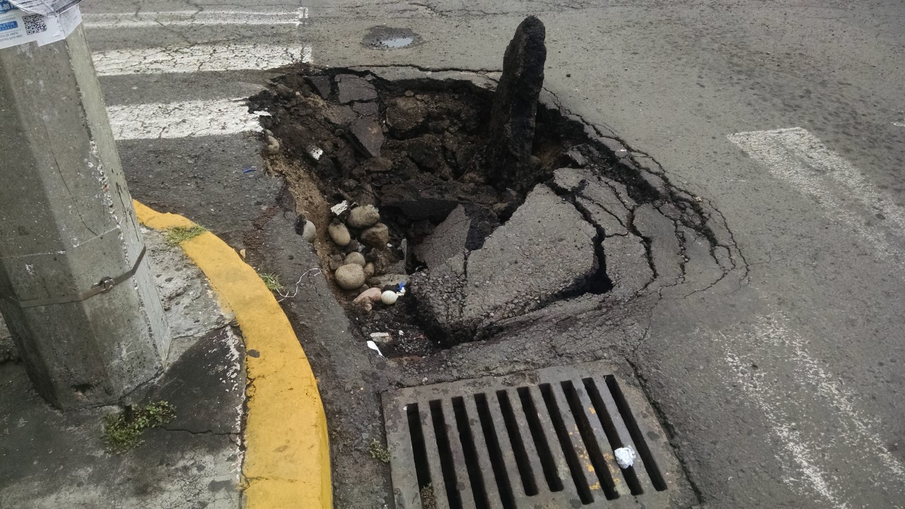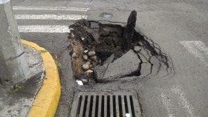 Información General HUNDIMIENTO EN HIDALGO ESQUINA MORALES DE LA CIUDAD DE VERACRUZ. 20 junio, 2018 c1130283 PIE DE FOTO. En la calle Hidalgo de la Ciudad de Veracruz, esquina Morales las recientes lluvias ocasionaron este hundimiento. Urge que las autoridades municipales hagan algo al respecto antes que ocurra un accidente de lamentables consecuencias.