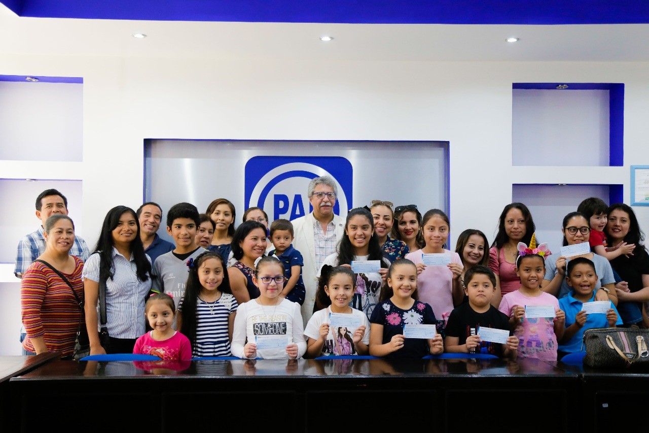 Posterior a la inauguración del curso para autoridades municipales, el diputado entregó becas de excelencia a niños de educación primaria.
