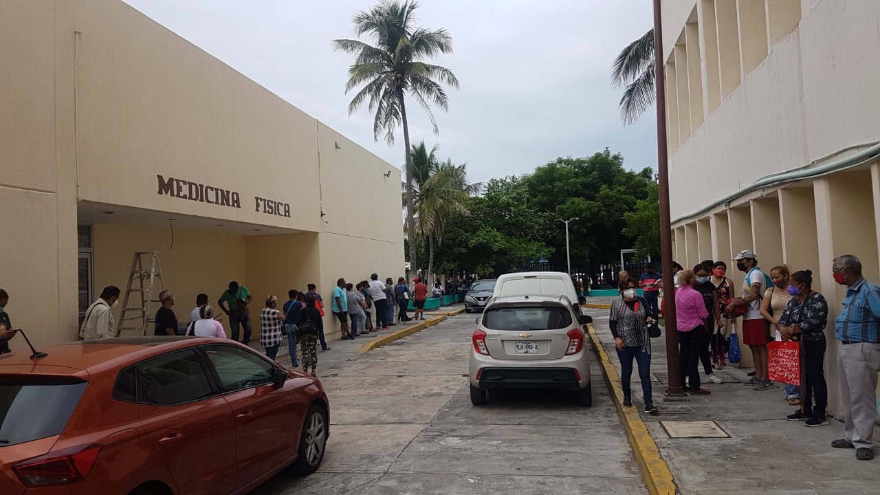 LARGAS FILAS EN SEGURO DE CUAHTEMOC PARA RECOGER LOS MEDICAMENTOS.