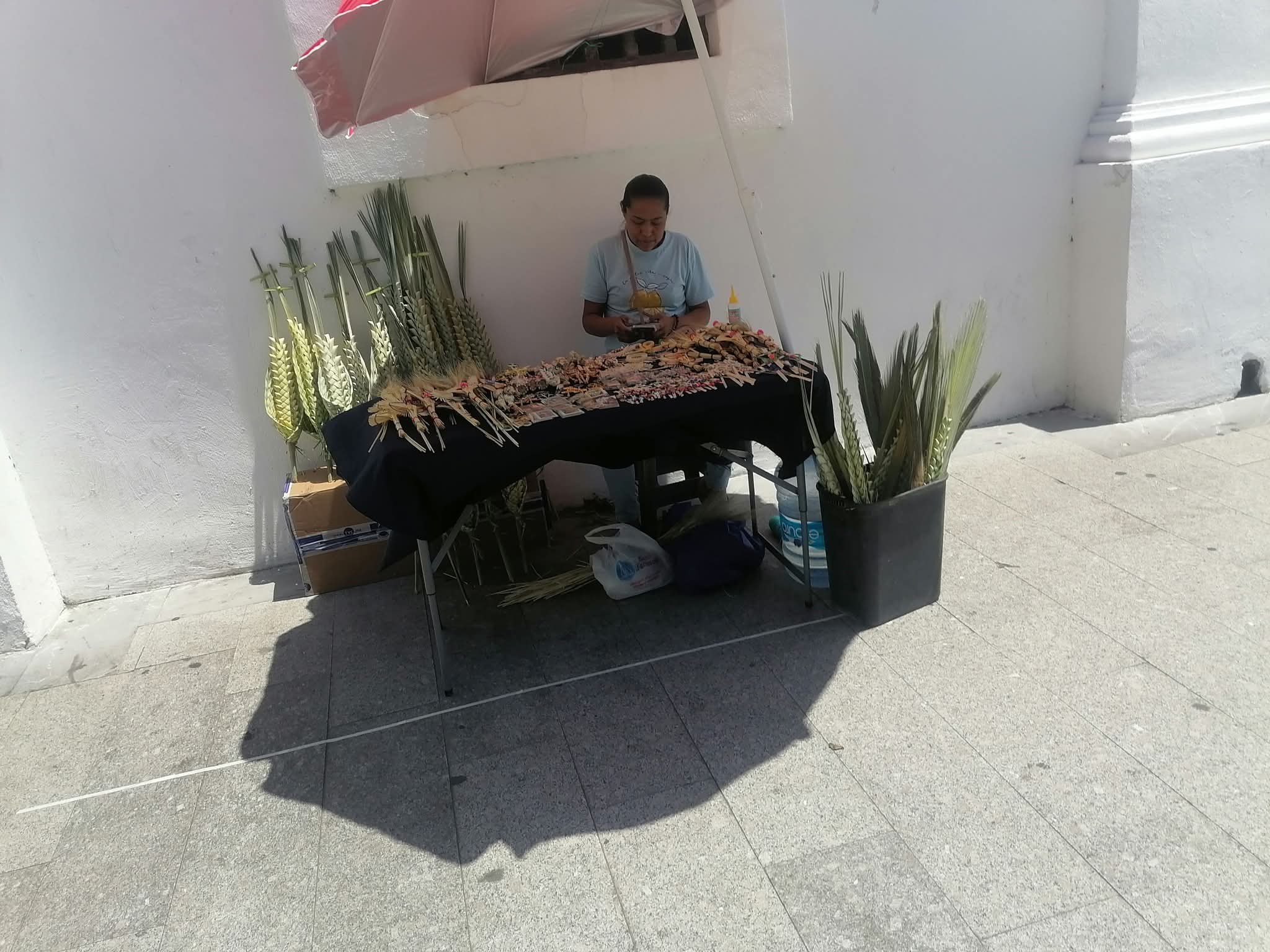 Veracruz Ver. A 26 de Marzo 2026.. A unos dias de que se lleve a cabo la celebración de Domingo de Ramos, han comenzado a llegar a la iglesia la Catedral de Veracruz los primeros vendedores de palmitas que ese día serán bendecidas en las diferentes misas que se lleven a cabo con motivo de esta fecha.