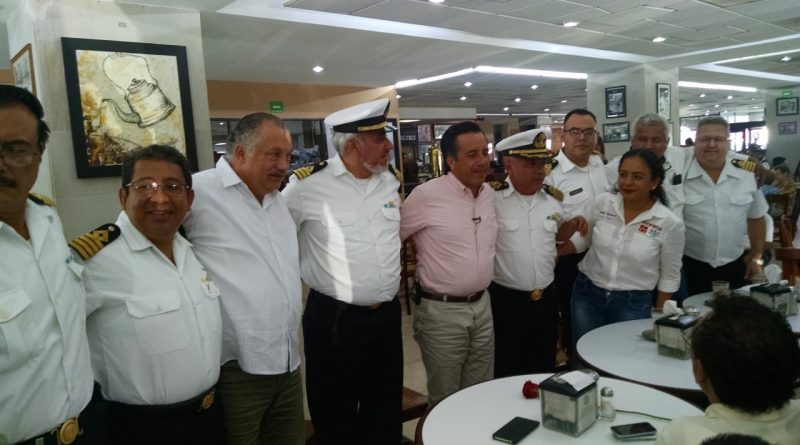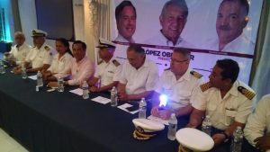 Acompañado del Capitán Ysmael García Muñoz secretario general de la OCPNRM, el IMN Enrique Othón Pacheco Georges secretario general del ASOMMMN y, de Honorio Alberto Galván Aguilar secretario general de la Unión Nacional de Maríneros del Puerto de Veracruz, el capitán Enrique Lozano Díaz inspector de ITF y, otros represetantes de marinos mercantes destacó que en este año los marinos mercantes «vamos con todo para hacer ganar a AMLO, porque vamos a ganar la presidencia de la República».