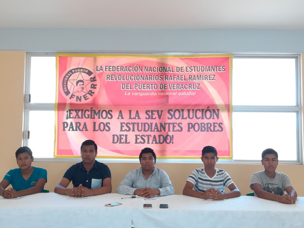 Veracruz, Ver.- 24 de Abril 2018.-Para este miércoles 25 de Abril, integrantes de la» Federación Nacional de Estudiantes Revolucionarios Rafael Ramírez(FNERRR) se suman a la marcha estatal de 2 mil estudiantes adheridos a esta federación para exigir al Gobierno del Estado que cumpla con compromisos pendientes para mejorar su infraestructura y, tener el mobiliario correspondiente.