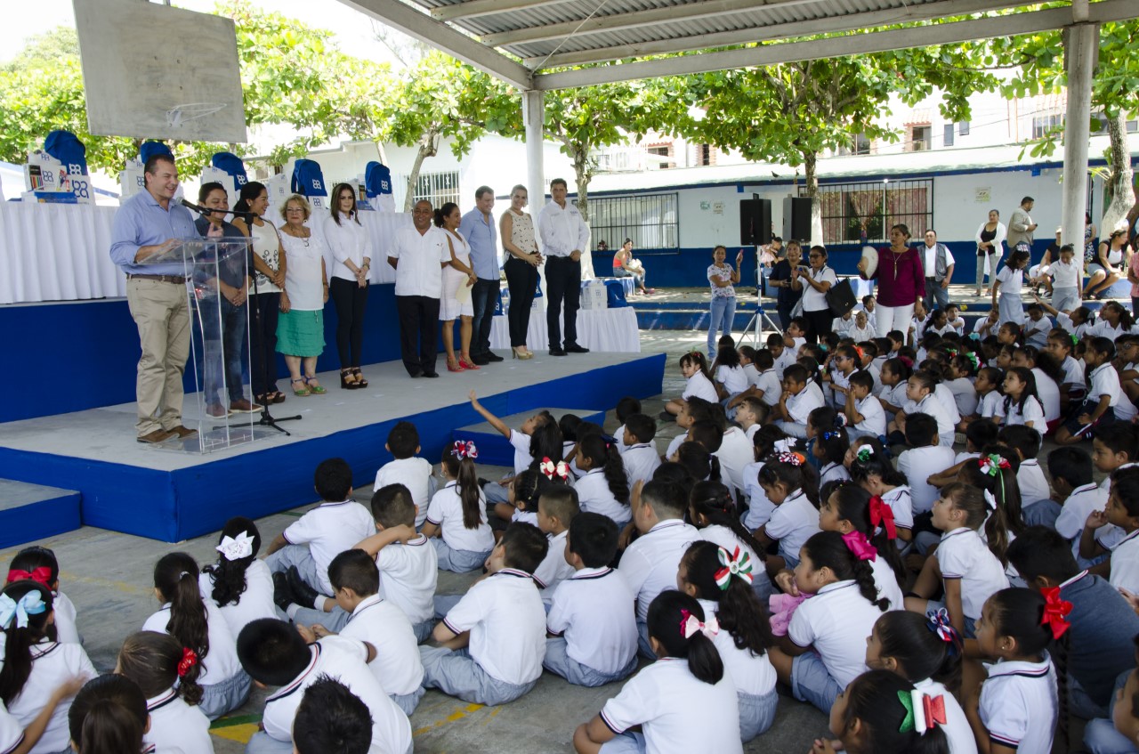 “Quiero decirles que todos los niños de las 58 primarias públicas de Boca del Río, contarán con su paquete escolar que consta de: un par de tenis, dos camisas, mochila, cuadernos, lápices, plumas, goma, sacapuntas, juego de geometría, caja de colores, pegamento y tijeras”, detalló.