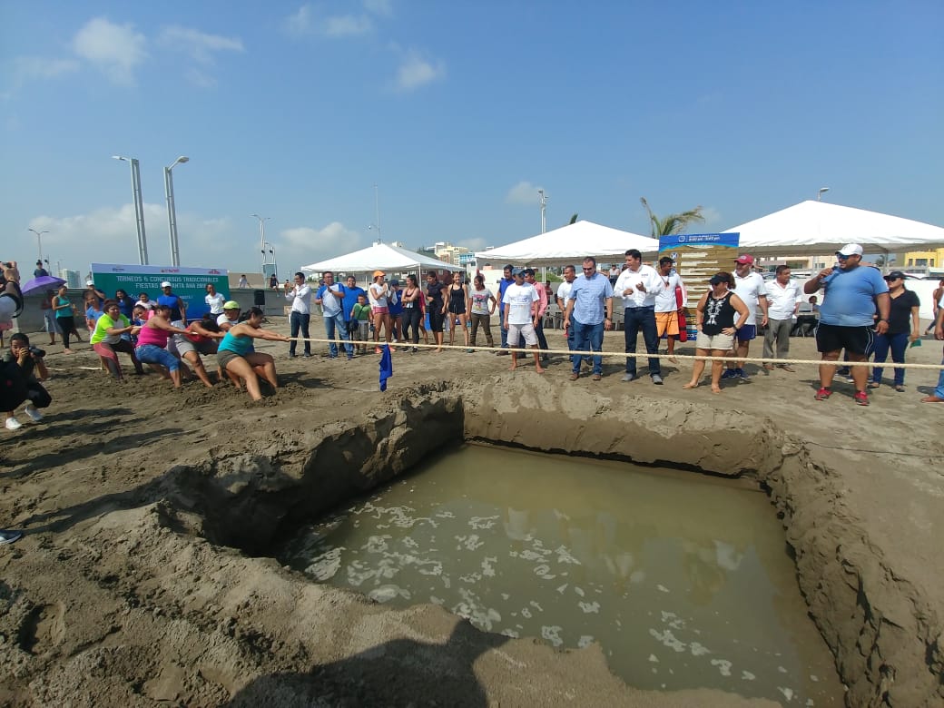 BOCA DEL RIO,VER,. A 25 de Julio 2018.-El alcalde de Boca del Río Humberto Alonso Morelli dio inicio a las actividades de las Fiestas de Santa Ana con los concursos de Vencidas de Cuerdas y Palo Encebado en Playa Santa Ana.